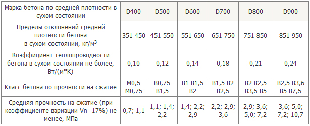 Характеристики пенобетонных блоковОдна из наиболее значимых характеристик пенобетонных блоков, на которую обращают внимание застройщики, - это плотность. Плотность пеноблоков обозначается буквой "D", измеряется в кг/м3 и имеет основные значения от 400 до 900. Это означает, что, например, при определенной влажности 1 м3 пеноблоков, которые имеют плотность D600, будет весить 600 кг. Плотность не определяет прочность пеноблока, но она очень важна при расчете нагрузок на фундамент. Ещё одной из важнейших характеристик пеноблоков является прочность, которая определяет прочность постройки. Прочность обозначается буквой "B". Например, прочность B1,5 показывает, что предел прочности на сжатие пенобетонного блока равняется 23 кг/см2. Это означает, что если поставить 800 пеноблоков, имеющих прочность B1,5 и плотность D600, друг на друга, то блок, находящийся в самом низу, не будет разрушаться под массой остальных блоков. Пеноблоки со временем имеют свойство увеличивать свою прочность, поэтому при выборе и покупке пеноблоков рекомендуется обратить внимание на величину прочности, так как очень часто недобросовестные производители при большом спросе пренебрегают сроком сушки и поставляют пенобетонные блоки в "сыром" виде. Теплопроводность является также важной характеристикой пеноблоков. Именно за эту характеристику пенобетонные блоки приобрели большую популярность. Теплоизоляция пеноблоков напрямую зависит от их плотности - чем ниже плотность, тем лучше теплоизоляция. Поэтому при выборе пеноблоков с высокой плотностью и прочностью необходимо знать, что теплопроводность таких блоков будет не самой высокой и постройке понадобится дополнительное утепление. В каждом отдельном случае, учитывая особенности строительства и назначение постройки, при выборе пеноблоков необходимо найти баланс между характеристиками теплопроводности и прочности. Только в этом случае построенное здание будет одновременно прочным и теплым. Характеристики пеноблоков в зависимости от плотности