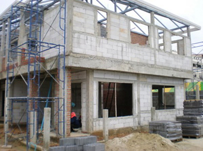 Строительство из пенобетонных и газосиликатных блоков в Пскове Используя ячеистобетонные блоки в качестве основного стенового материала без особого труда и за короткие сроки можно построить качественный, красивый и уютный дом любого уровня сложности. Уже на начальном этапе строительства (обустройство фундамента) можно почувствовать выгоду и удобство строительства из этого материала. За счет легкости блоков строительство зданий можно вести на слабонесущих грунтах, что не предоставляется возможным для строительства из кирпича или монолитного бетона. Строительство зданий и сооружений из ячеистых блоков может вестись с применением цемента или специального клея. Использование клея имеет большие преимущества, главное из которых - обеспечение минимальной толщины шва, которая достигает 2-3 мм. Такая толщина шва обеспечивает большую прочность соединения между блоками и лучшую теплоизоляцию стен. Некоторые виды строительного клея можно применять для кладки блоков при температурах до -15°C, что позволяет возводить постройки даже в холодное время года. Строительство из блоков имеет много преимуществ. Большие размеры и сравнительно небольшой вес блоков позволяет возводить здания в короткие сроки и без особых усилий. При этом блоки благодаря своей правильной форме легко укладываются на строительную основу без предварительной подготовки. Благодаря пористой структуре ячеистобетонные блоки можно при необходимости без особых проблем обработать и придать им необходимую форму. Отделочные работы по окончании строительства также ведутся без особых проблем, так как возведенная стена будет ровной, и на нее легко можно будет нанести штукатурку, обои или краску без сложных подготовительных работ. Блоки из ячеистого бетона получили широкое распространение в строительстве и реконструкции малоэтажных и многоэтажных жилых домов, гаражей, производственных и сельскохозяйственных построек. В частности блоки могут использоваться в качестве основного стенового материала для увеличения этажности различных зданий. Также их можно использовать для кладки межэтажных перекрытий, перегородок и межкомнатных стен. Наша компания предлагает Вам услуги по реконструкции и строительству домов и различных построек в городе Псков и области из ячеистобетонных блоков "под ключ". Мы готовы реализовать все этапы строительства, которые пройдут в самые кратчайшие сроки. Наши квалифицированные строители имеют большой опыт работы в данной сфере деятельности и обладают необходимыми знаниями. Наши специалисты качественно построят дом любого уровня сложности, будь то дачный домик, коттедж или большой семейный дом. |